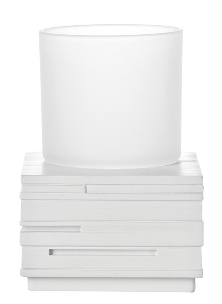 Sklenka. Design imitace dřeva. Materiál polyresin, barva bílá. Sklo je matné. Rozměr podstavce 8x8x5,5 cm.