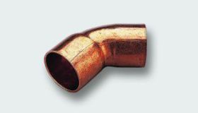 Měděný oblouk 45° pro spojování měděných trubek pájením.