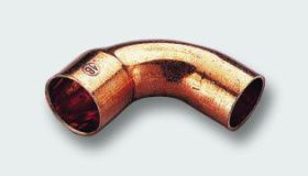 Měděný oblouk 90° pro spojování měděných trubek pájením. • pro rozvody pitné a užitkové vody, systémy vytápění, solární zařízení, rozvody vzduchu, domovní rozvody vzduchu ...