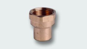 Přechod s vnitřním závitem z červeného bronzu pro spojování měděných trubek pájením.