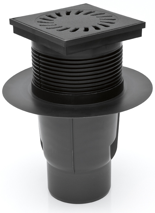 Výškově upravitelná vpusť 250 - 310 mm, dodávána s plastovou mřížkou.