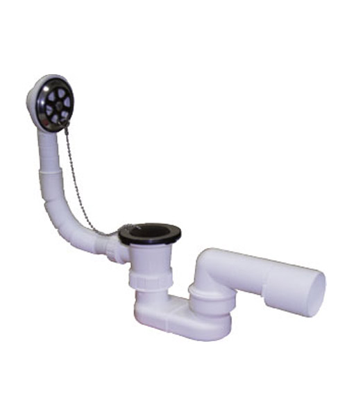 vanový sifon s přepadovou trubkou, nerezovou mřížkou a zátkou se řetízkem