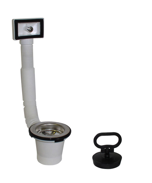 Dřezový výtokový ventil univerzál,zátka,řetízek - pileta pro dřez s přepadem 6/4"",