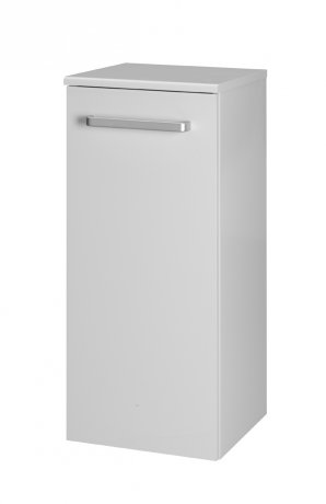 Nízká koupelnová skříňka Q MAX SNZ 35 S v závěsném provedení. Korpus této nízké skříňky je vyroben z bíle lakovaných LTD desek. Dvířka skříňky jsou vyrobena z vysoce kvalitních MDF desek na jejichž povrchu je nanesena akrylátová vrstva Senosan (povrchová úprava s vysokým leskem). Přední plocha dvířek má ostré hrany.