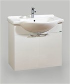 Závěsná umyvadlová skříňka s umyvadlem šířky 75 cm řady Lebon Elements B, provedení bílá nebo dub. Včetně dvou chromových úchytek. Dvířka mají pneumatické dorazy.