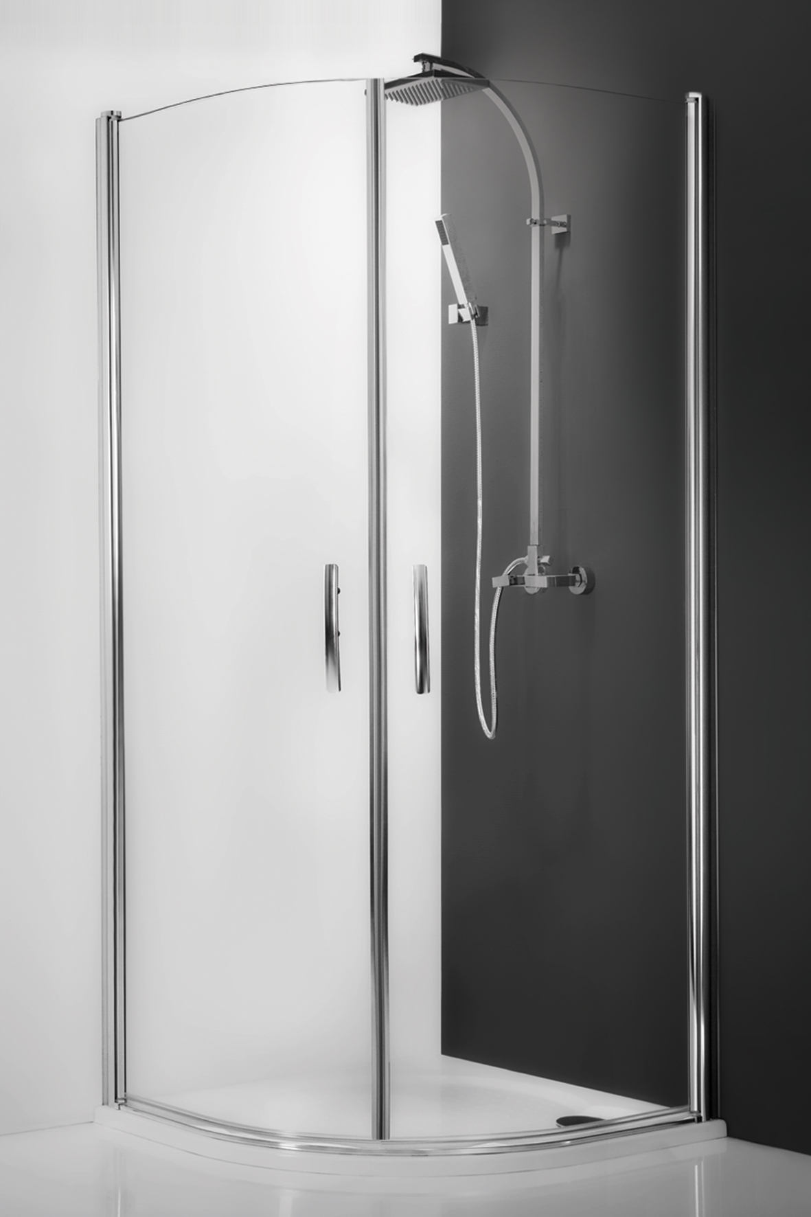 Sprchový kout čtvrtkruhový s dvoukřídlými dveřmi