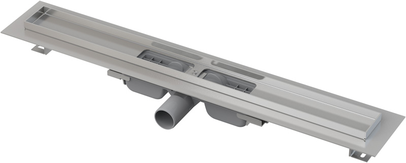 Tento žlab je určen pro vkládání perforovaných roštů. Nerezový okraj tvoří pohledový přechod mezi dlažbou a vloženým roštem. Voda vtéká do žlabu přes okraje a otvory vroštu. Umísťuje se do prostoru nebo do blízkosti stěny.