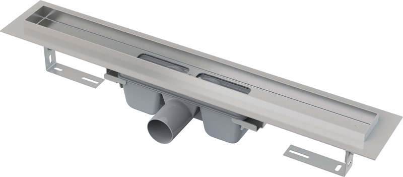 Tento žlab je určen pro vkládání plných roštů. Nerezový okraj tvoří pohledový přechod mezi dlažbou a vloženým roštem. Voda vtéká do žlabu pouze mezi okrajem žlabu a roštem. Umísťuje se do prostoru nebo do blízkosti stěny.