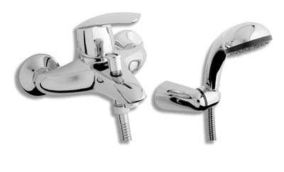 baterie se samočistící sprch.růžicí, vícezámkovou kovovou hadicí a otočným držákem sprchy. Rozteč 150 mm.