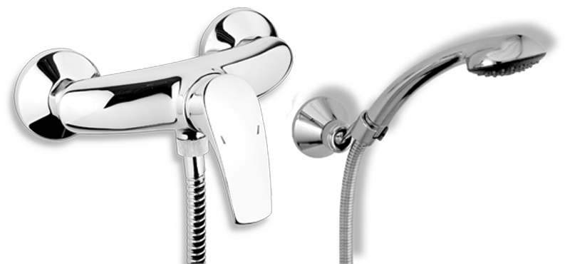 baterie se samočistící 2-polohovou sprchovou růžicí, vícezámkovou kovovou hadicí a kloubovým držákem. Rozteč 150 mm.