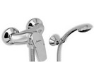 baterie se samočistící 2-polohovou sprchovou růžicí, vícezámkovou kovovou hadicí a kloubovým držákem sprchy. Rozteč 100 mm.